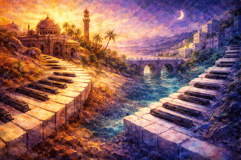 鍵盤を、水滴が偶然叩いて生まれて音を紡いでいる。